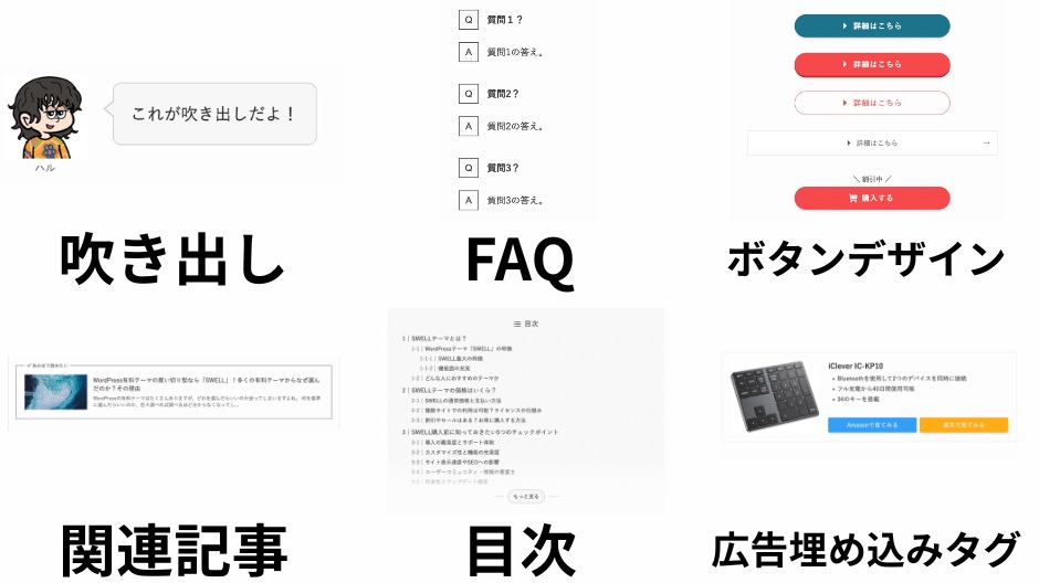 プラグインを増やしすぎるとサイト表示が重くなりがちですが、SWELLであればテーマ機能だけで必要なことをある程度まかなえるため、